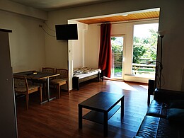 Gegen Gebühr stehen auch Waschmaschine und Trockner zur Verfügung.